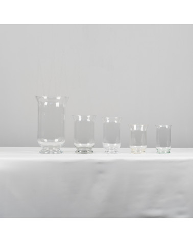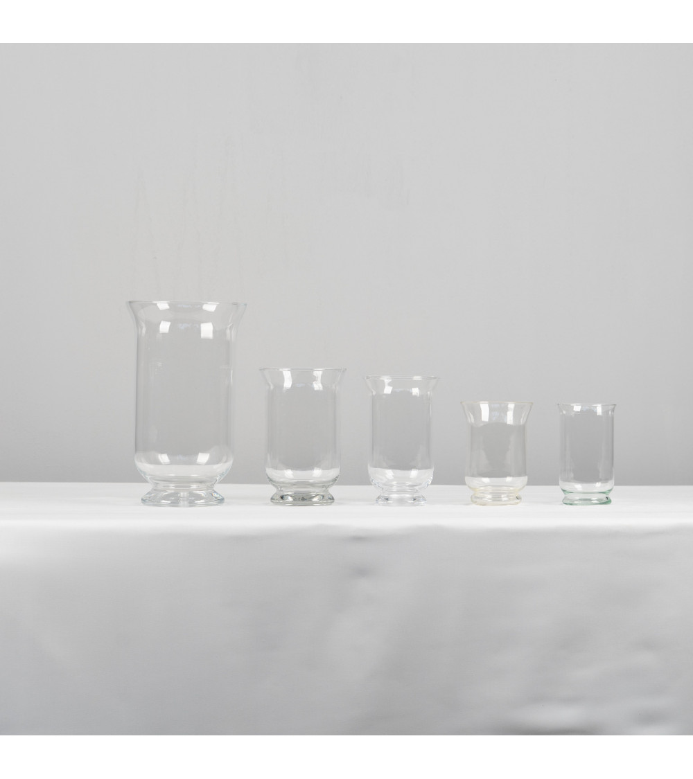 Clear glass Hans vases available in various sizes, suitable for pillar candles.